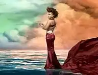 Jackson wearing a maroon-colored gown standing in an ocean while clouds can be shown in the background in the "Call on Me" music video. It is noted as one of the most expensive music videos ever made
