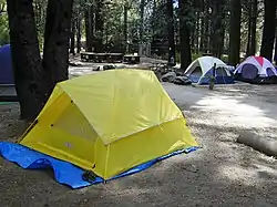 Camp 4 is a tent-only campground in Yosemite National Park in the United States.[2] It became notable after World War II as "a birthplace of rock climbing’s modern age."[3] It is located at an elevation of 4000 ft (1200 m) on the north side of the Yosemite Valley, close to base of granite cliffs near Yosemite Falls.[2]