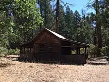 Cyrill Carpenter Smith (1827-1900) and his brother, Dorilas (1835-1882)[lower-alpha 1] arrived in the area around 1853, and secured rights to the property under certificates of preemption. Cyrill homesteaded his property in 1884. Cyrill's sister-in-law homesteaded her husband's property. Cyrill originally bought the property, which included Hetch Hetchy Valley and the camp's northwest corner. The Smith brothers purchased their property from the federal government for $1.25 per acre. Cyrill built a log cabin on the property, which still stands.[lower-alpha 2][1] The brothers acquired additional property and Cyrill later bought out his brother. The property ownership moved to Cyrill's son, Elmer E. Smith, when Cyrill died in 1900.