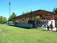 The facilities consist of a rugby field with natural grass, a covered grandstand, changing rooms for home and away teams and referees, and two small sports equipment storage areas. Additionally, the club's bar is open on match days, and is also responsible for preparing the popular after-match parties.[6]