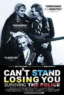 Can't Stand Losing You: Surviving the Police is a 2012 American documentary film directed by Andy Grieve on the subject of the English rock group The Police.[1] The film is loosely based on One Train Later: A Memoir written by guitarist Andy Summers. The title references one of the song titles from the band's debut album, Outlandos d'Amour.