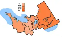 The region was one of the few that resisted the massive Liberal surge in Ontario in 2015, though the Liberals managed to take Stronach's old riding of Newmarket—Aurora on the outer fringe of the Greater Toronto Area, a region that swung heavily to the Liberals in this election. They also managed to take all of Peterborough.
