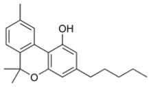 The most prevalent psychoactive substances in cannabis are cannabinoids, particularly THC. Some varieties, having undergone careful selection and growing techniques, can yield as much as 34% THC.[19] Another psychoactive cannabinoid present in Cannabis sativa is tetrahydrocannabivarin (THCV), but it is only found in small amounts and is a cannabinoid antagonist.[20]