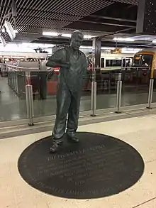 The Plumber's Apprentice by Martin Jennings, unveiled in 2011 to mark the 400th anniversary of the Worshipful Company of Plumbers whose Guild Hall was demolished to make way for the station.[42]