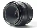 The EF50mm f/2.5 Compact Macro is a relatively inexpensive macro lens with a minimum focusing distance of 23 cm (9 inches) offering a maximum magnification of 0.5x actual size.[8] Reviewers describe the lens as having "decent"/"mid-level" build quality, with very good color and contrast, "absolutely negligible" distortion, very sharp after f/4 and peak performance at f/5.6. However, auto-focusing is relatively slow and noisy.[11][12]