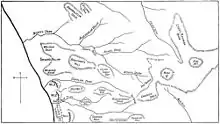 Around four miles (6.4 km) to the north of Jaffa is the River Auja, along which the withdrawing Turkish Fourth Army had formed a defence line. The only crossing points were a bridge at Khurbet Hadrah, and three fords. One of these was about two miles (3.2 km) to the east of Hadrah, another was at Jerisheh and the third at the river mouth.[90]