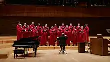 They have won numerous awards at international choral competitions, including those in Lecco, Italy (1997), Moscow (2000), Prague (2002, 2003, 2004), Międzyzdroje, Poland (2004) and Warsaw (2013, 2015, 2016).[2] In the autumn of 2016, they won First Prize at the 12th Varsovia Cantat International Festival (in the chamber choirs category).