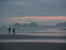 Cape Lookout is a sharp rocky promontory along the Pacific Ocean coast of northwestern Oregon in the United States. It is located in southwestern Tillamook County, approximately 10 miles (16 km) southwest of Tillamook, just south of Netarts Bay. The promontory extends 1.5 miles (2.4 km) perpendicular to the coast, and is approximately 0.5 miles (0.80 km) wide at its base, tapering as it extends outward from the coast. Cape Lookout State Park is located on the north side of the promontory, which is part of the Siuslaw National Forest. Cape Lookout Road travels past the base of the cape. Cape Lookout is a member of Tillamook's Three Capes Scenic Drive.[1]