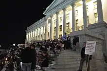 In 1967, when the last pre-moratorium execution took place, Utah was the only remaining state to allow death row inmates to choose between firing squad and hanging.[4][8] Utah attempted to reintroduce death penalty statutes during the moratorium but they were struck down by the 1972 United States Supreme Court decision in the case Furman v. Georgia.[9] The state formally reinstated capital punishment on January 7, 1973,[10] and the new death penalty statutes were approved by the United States Supreme Court with the reinstatement of capital punishment in 1976. The reinstatement allowed Utah to move forward with the death sentences of Dale Selby Pierre and William Andrews for crimes committed in 1974 prior to the reinstatement of capital punishment. They were later executed in 1987 and 1992, respectively. On January 17, 1977, Utah became the first state to execute a prisoner after the moratorium ended: Gary Gilmore was executed by a firing squad,[11] having selected that method over hanging. Lethal injection was introduced in 1980[8] and in February of that year, the Utah State Legislature replaced the option of hanging with the option of lethal injection.[12]