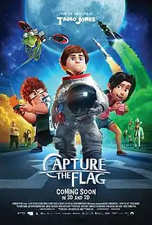 Capture the Flag (also known as Atrapa la Bandera in Spanish) is a 2015 Spanish computer-animated science-fiction adventure comedy film directed by Enrique Gato and written by Patxi Amezcua. Produced by 4 Cats Pictures and animated by Lightbox Entertainment, the film was distributed worldwide by Paramount Pictures, which was a milestone for Spanish cinema, as this was the first time a major Hollywood studio acquired and agreed to distribute two Spanish animated films worldwide (not just one, like most other films), with the other one being Tad the Lost Explorer and the Secret of King Midas.[4] The film takes place in the present alternate times of the year 2015, and the storyline is about Mike Goldwing, a 12-year-old surfer who embarks on a journey with his friends to disrupt a billionaire's plan to destroy the American flag planted on the Moon.