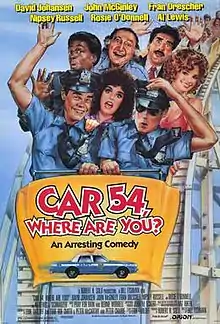 Car 54, Where Are You? is a 1994 comedy film directed by Bill Fishman and stars David Johansen and John C. McGinley. It is based on the television series of the same name starring Joe E. Ross and Fred Gwynne that ran from 1961 to 1963.[1]
