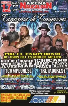 - ↑ "IWRG @ Naucalpan – Caravana de Campeones 2014". Wrestling Data. December 17, 2014. Retrieved April 21, 2016.