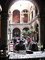 The building at 104 Donceles Street was originally the home of the Cristo College, founded by Don Cristobal Vargas de Valdez in 1612, when it received its royal charter.[1] The college began with a dean and twelve students who took classes at San Ildefonso College and the College of San Pedro y San Pablo.[5] No classes were given in this building, but it was still called a college because it offered scholarships for students living there.[1] The college almost closed in 1774 due to lack of funds, and was subsequently merged with San Ildefonso College in 1775.[1]