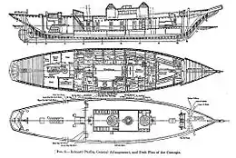 Inboard profile, general arrangement and deck plan of the Carnegie