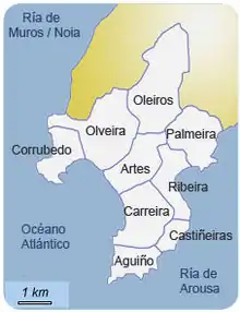 Municipality of Santa Uxía de Ribeira showing its constituent parishes