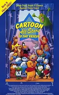 Cartoon All-Stars to the Rescue is a 1990 American animated television film starring many characters from several animated television series at the time of its release.[1] Financed by McDonald's, Ronald McDonald Children's Charities, it was originally simulcast for a limited time on April 21, 1990, on all four major American television networks (by supporting their Saturday morning characters): ABC, CBS, NBC, and Fox[lower-alpha 1], and most independent stations, as well as various cable networks.[2][3] McDonald's released a VHS home video edition of the special distributed by Buena Vista Home Video, which opened with an introduction from President George H. W. Bush, First Lady Barbara Bush and their dog, Millie. It was produced by the Academy of Television Arts & Sciences Foundation and Southern Star Productions, and was animated overseas by Wang Film Productions. The musical number "Wonderful Ways to Say No" was written by Academy Award-winning composer, Alan Menken and lyricist Howard Ashman, who also wrote the songs for Walt Disney Animation Studios' The Little Mermaid, Beauty and the Beast, and Aladdin.
