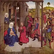 ![]() Caspar being handed a covered beaker – from The Adoration of the Magi (Geertgen tot Sint Jans) | |