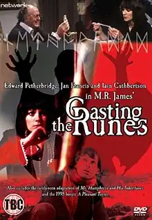 Casting the Runes is a supernatural television drama produced by ITV in 1979. Running at 50 minutes, it was based on the ghost story Casting the Runes by British writer and academic M. R. James, first published in 1911 as the fourth story in More Ghost Stories, which was James' second collection of ghost stories. Directed by Lawrence Gordon Clark[1][2] for the series Playhouse, produced by Yorkshire Television, it was first broadcast on ITV on 24 April 1979. Adapted by Clive Exton,[2][3] it reimagined the events of James's story taking place in a contemporary television studio.[4]