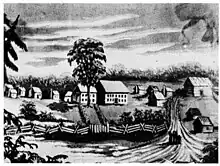 After her brother died, Catharine returned home to care for her parents who, by this time, were in their sixties and living in John’s home. She visited the missions at Creek Path and Brainerd but had resigned herself to her duty of caring for her aging parents. In a letter to her other brother, David, she expressed a hope to possibly emigrate west and viewed the opportunity to spread her values with a sense of excitement and enthusiasm.[4] However, Catharine had already began to show signs of the same illness that claimed her brother. She sought the help of Dr. Alexander Campbell, a white physician who lived near Limestone, Alabama, but as her condition grew worse her parents became desperate. Much to the dismay of the missionaries at Brainerd her parents entrusted her care to traditional healers. Their prescriptions reportedly helped little and after she had a severe hemorrhage in her lungs they sent for the missionaries. A week later, Dr. Campbell arrived but her condition was very grave. He had Catharine transported to his home so she would be under constant care. Her mother and sister joined her on the journey by litter, canoe and carriage. On the morning of July 18, 1823, Catharine Brown died at Dr. Campbell’s home. He was said to remark upon her death, “Thus fell asleep this lovely saint, in the arms of her Savior".[5] [1]