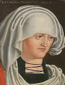 Catherine was a daughter of the Duke Ernest I of Austria and Styria, nicknamed "the Iron" from his marriage to Cymburgis,[1] a daughter of Duke Siemowit IV of Masovia. Catherine's older brother Frederick III was crowned Holy Roman Emperor in 1452. She grew up in Wiener Neustadt, together with her brothers Frederick III and Albert VI.[2]