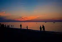 Cedar Beach Main is typically the most lively section of Cedar Beach and is located near its eastern entrance and the main parking areas. It includes a restaurant, bar, snack stand, restrooms, lifeguard stations, and volleyball courts. Live music performances take place in near the restaurant during the summer months.