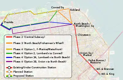 - ↑ Rodriguez, Joe Fitzgerald (June 13, 2018). "Planning begins for Central Subway extension to Fisherman's Wharf". San Francisco Examiner. Retrieved June 15, 2018.