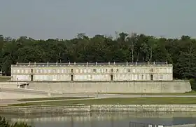 It is a long, neoclassical building, designed by Jean-François Leroy in 1769 as lodging for the guests that Louis Joseph, Prince of Condé entertained at Chantilly.