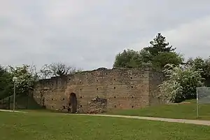 The site was refortified in both 1468 and 1472 (during the third quarter of the 15th century), but neither of these fortifications survive today either.[1] The motte was then known as "Motte de la Chapelle" and in 1966, the motte was going to be levelled by Michel de Boüard,[2] but when a mechanical device gutted the mound and uncovered traces of masonry, the site was stopped and the ruins were excavated and it was made a historical monument on December 19, 1973.[1] Most of the motte was still eventually flattened to expose as much of the ruins of the aula as possible.[2]