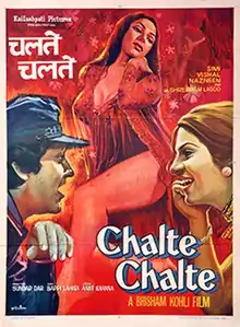 Chalte Chalte (transl. On the Way) is a 1976 Indian Hindi-language musical romantic thriller film directed by Sunder Dar and produced by Bhisham Kohli.[2] It stars Vishal Anand (Bhisham Kohli's screen name) and Simi Garewal in pivotal roles. The film was noted for its songs by Bappi Lahiri, and title song, "Chalte Chalte" sung by Kishore Kumar was part of the Binaca Geetmala annual list 1976.[3] It was a superhit at the box office.