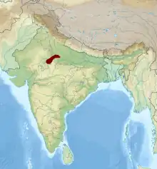 It covers the districts of Baran, Kota, Sawai Madhopur, Karauli, and Dholpur districts of Rajasthan, parts of Agra, Firozabad, Etawah, Auriya and Jalaun districts of UP, and Bhind, Morena and Sheopur districts of Madhya Pradesh. The region is covered by an estimated 5 Lakh hectares of badlands. It drains the northwest of the Central Vindhya Plateau and the southeastern part of the Aravalli Range. Southeastern tributaries like the Kali Sindh and Parbati begin at the extreme south of the Vindhyas and flow north in deep valleys, forming a triangular alluvial plain at elevation of 240-270 m. Afterwards the Banas, a northwestern tributary of the Chambal draining the Aravalli Range, joins the Chambal after crossing the hills near Sawai Madhopur in southeastern Rajasthan. The valley of the Chambal is wider near the confluence of the Kali Sindh and the Parbati and narrower after the confluence of the Banas. The Chambal extends to the ravines of the Choti Parbati in Rajasthan and the Kwari river in northeastern Madhya Pradesh.[1] The Chambal badlands are part of the greater Vindhyan Basin.[1]