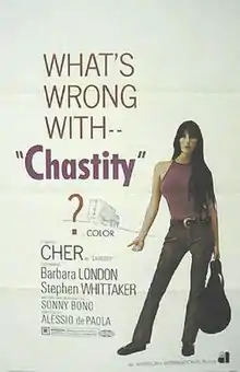 Chastity is a 1969 American romantic drama film directed by Alessio de Paola and starring American singer-actress Cher, in her first film role without her then-husband Sonny Bono.[1][2] Written and produced by Sonny Bono, as a star vehicle for her, it flopped badly and deterred her from acting in films for more than a decade.[3][4][5]