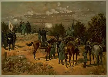 - ↑ Smith, p. 280; McDonough, pp. 199–200; Cozzens, p. 308; Woodworth, Six Armies, p. 201. The last flag-bearer mentioned in the quotation, an eighteen-year-old lieutenant, was awarded the Medal of Honor for this action. He was Arthur MacArthur, Jr., and would later become the father of Douglas MacArthur.