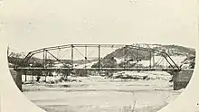 The new bridge connected the new village of South Royalton to the rest of Royalton, and later to the stagecoach route to Chelsea and Tunbridge (present-day Route 110).[2] It was a toll bridge, with gates, a gate keeper, and a few cents' toll. This bridge was torn down in 1903, replaced with a single-lane camelback iron truss bridge, with a cost of $12,282, including about $5,000 for the abutments.[3] Though the iron bridge was the only bridge on the White River to withstand the Great Flood of 1927, the village's approach to the bridge washed away, leaving a 150-foot chasm. A two-lane bridge extension was built of concrete to fill the gap. The 1903 bridge was removed in 1935, after which a new iron bridge was built.[2] The new bridge was a two-lane Parker through truss bridge, and cost $30,021. The bridge was comparable to others built after the 1927 flood, and was identical to Bethel's River Street Bridge, built in 1928.[1]