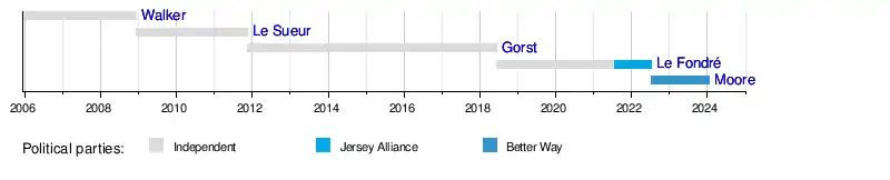 - ↑ "Senator John le Fondre is Jersey's new chief minister". BBC News. 4 June 2018.