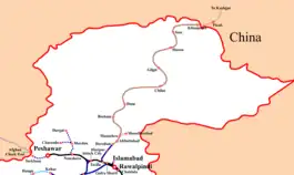 At the southern terminus of the new Brahma Bahtar-Yarik motorway, the N50 National Highway will also be upgraded between Dera Ismail Khan in Khyber Pakhtunkhwa and Zhob in neighbouring Balochistan province, with eventual reconstruction between Zhob and Quetta.[150] The upgraded roadway will consist of a 4 lane dual-carriageway spanning the 205 kilometre distance between the two cities.[151] The first portion of the N50 to be upgraded will be the 81 kilometre portion of the N50 between Zhob and Mughal Kot, with construction works having begun in January 2016.[152] Construction on this portion is expected to be completed by 2018 at a cost of $86 million.[150] While the project is considered a vital link in the CPEC's Western Alignment,[152] the project's cost will not be financed by Chinese state-owned banks, but instead by Asian Development Bank under a 2014 agreement which preceded CPEC,[153][154] as well as by a grant provided by the United Kingdom's Department for International Development.[155]