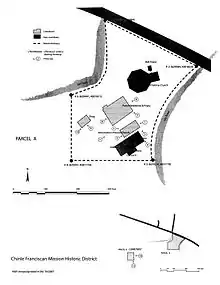 The Chinle Franciscan Mission Historic District is located in Chinle, Arizona, one of the population centers on the Navajo Nation. It is on the west side of the main east–west route through Chinle, Indian Service Route 7. The 2.92-acre site is approximately 2 miles west of Canyon de Chelly National Monument, and is the core of a larger 160-acre parcel which is in held in trust by the U.S. Federal Government for the Navajos. It was originally set aside for the Franciscan Friars in 1903, and is now leased by the Roman Catholic Church, through the Diocese of Gallup, New Mexico. It includes the Our Lady of Fatima Church. The entirety of the historic district is defined by three historic buildings, one historic object and one historic site. The buildings were constructed between 1905 and 1925 and are the Friary, the Annunciation Mission Church, and the Workshop/Garage; the object is the church bell, which was cast in 1914; and the site is the church's cemetery, which was active between 1907 and 1935. The district is made up of two discontiguous parcels. The first parcel is 2.2 acres and contains the Friary, Church, Garage and Bell, while the second parcel is .72 acres and contains the cemetery.[2]: 42