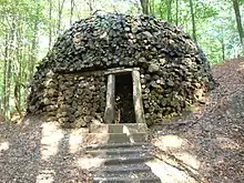 In addition to ephemeral works, some of Drury's lasting pieces include "cloud chambers", darkened caverns constructed of local rock, turf, or other materials. Each chamber has a hole in the roof which serves as a pinhole camera; viewers may enter the chamber and observe the image of the sky and clouds projected onto the walls and floor. He has made several around the world, with his latest, Horizon Line Chamber, constructed with master craftsman Andrew Mason, opening in 2019 at Morecambe Bay as part of the Headspace to Headlands Heritage Lottery Commission.[5]