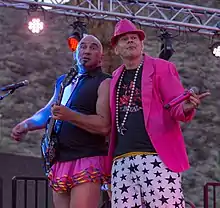 Steve McKnight (left) and Freeman (right) perform with GayC/DC at Palm Springs Pride in Palm Springs, California in 2018.