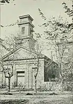 After the opening of what is now eastern Iowa to American settlement in 1832, the town of Flint Hills was established the following year along the shores of the Mississippi River. The name "Shoquoquon", or Flint Hills, had been given to the area by the Sauk and Meskwaki tribes.[2] Three years after the town was founded, the Right Rev. Jackson Kemper, Missionary Bishop of the Northwest, met an attorney named David Rorer, on the steamboat Olive Branch. Rorer was on his way to set up a practice in the young town and he convinced the bishop to establish a mission there.[3] The town's name had been changed to Burlington in 1838 and the bishop established a mission of the Episcopal Church the same year. The Rev. John Bachelder from Rhode Island volunteered to serve the station and on March 15, 1839, he held the first service in Old Zion Church, Burlington's only religious building at that time.[3] The mission was organized into a parish the following year.