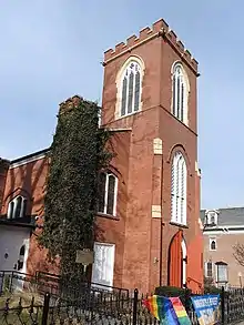 Christ Episcopal Church is a historic Episcopal church located at 43 South Broadway (US 9) in Tarrytown, New York. Topped by a modest tower, the ivy-covered red brick church was built in 1837 and maintains an active congregation to the present day. The church also includes the San Marcos Mission, a Spanish-language ministry.