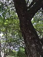 Rain trees are common on the university campus. They are associated with the cycle of student life. Fresh green leaves at beginning of the term represent the freshmen's naivete. As the tree produces slimy pods and sheds leaves, the ground beneath it becomes slippery, thus alerting students to prepare for examinations. If they walk carefully, they will not slip (pass examinations). If they walk heedlessly, they will slip and fall (fail examinations).[21]