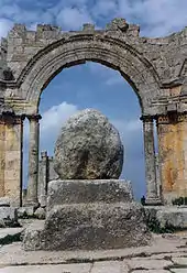 The remains of the pillar of Saint Simeon Stylites in 2000, before 2016 Russian airstrikes.[3]
