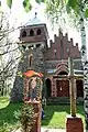 The church was built in the style of a mediaeval castle or manor house[2] using stone and brick[1] and the roof was of Polish red tiles. The belfry had three bells, the largest of which weighed 150 kg.[6] The doors were massive and forged[2] and the windows were glazed with colored stained glass, there were wall paintings, and a crystal chandelier hung in the middle of the sanctuary.[7] The acoustics were excellent.[2]