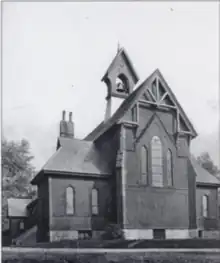 Charles C. Sanderson, who sold the building lots in Oakdale, also erected a building containing a public hall and a store.[3] A mission Sunday school was begun by lay readers from St. Paul's in the Sanderson Building on June 8, 1873[3] for Anglicans in the Oakdale section of town who could not get to the church easily.[4] Soon after, on the 29th of the same month, public services of the Episcopal Church were begun in Sanderson Hall and for three years they were conducted by lay readers.[3]