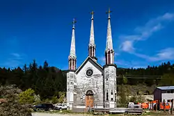 The Church of the Holy Cross is a National Historic Site of Canada,[1] located on one of the Indian reserves of the Skatin First Nation, in southwestern British Columbia. It is located on the east side of the Lillooet River on BC's first inland Gold Rush trail, the Douglas Road. Skatin Nations is the St'at'imcets language rendition of the reserve-town's usual name in English, Skookumchuck Hot Springs (often just "Skookumchuck", which means "strong water(s)", is also the name of three other places in British Columbia and in general use means a rapids - a set of rapids, historically called the "Falls" of the Lillooet River are nearby).