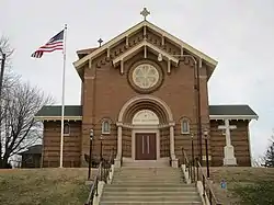 Besides the church building, the parish has a school building built in 1916 and a convent and rectory built in 1926.[2]