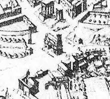 The family was important predominantly during the Middle Ages, both in the Papal states and Regno, the Kingdom of Naples. In Rome the family is noted for having a fortification in Forum Romanum, including half the Arch of Septimius Severus: Claustrum Cimini. The property consisted of a public road leading through the center of the arch. On the arch itself a tower existed as part of the fortification, which may have been the no longer used campanile of the church of Santi Sergio e Bacco. Cimini property also included a walled area around half the arch [8]); the other half was in 1199 given by Pope Innocent III to the church of Santi Sergio e Bacco. The stronghold included a tower placed on top of the arch itself.[9]
