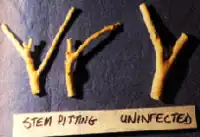 Stem-pitting is another symptom of CTV that manifests in most host types under the proper conditions, and especially in Citrus trees grafted onto sour orange rootstock. The host will develop pits in the trunk and stem. This results is decreased tree vigor and reduced fruit yield. This is typically caused by the more virulent strains of CTV.[7]
