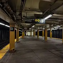 - ↑ "B. M, T. Station Lengthening Is Nearly Finished: 76 Platforms Are Extended 3,186 Feet to Make Room for 126.000 Additional Passengers in Rush Hours City Carried Out Work I.R.T. Changes Planned, but That Company Refuses to Pay Its Share of Costs". New-York Tribune. August 2, 1927. p. 32. ISSN 1941-0646. ProQuest 1113704092.