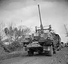 After the Battle of Gazala Eighth Army retreated to a fall-back position at El Alamein. Here 61st LAA Rgt and its batteries came under the command of 7th Armoured Division.[109] However, the regiment had been withdrawn from the front line by the time the Second Battle of El Alamein was fought in October 1942. From January 1943, 43 (CoLY) LAA Bty was defending the army's bases in Egypt, which increasingly became a back area.[110][111] 61st LAA Rgt was broken up in the Middle East on 1 August 1944 to provide infantry reinforcements for Eighth Army in Italy.[102][94][112][113]